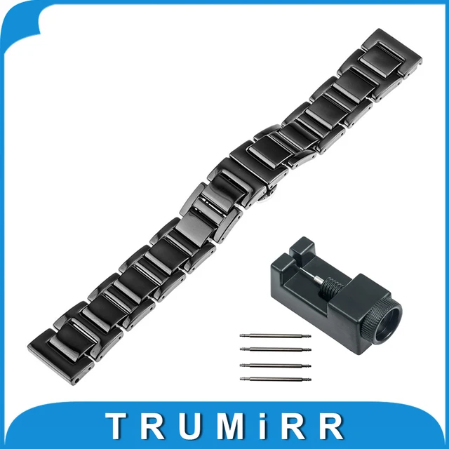 | [해외]16 미리메터 18 미리메터 20 미리메터 전체 세라믹 손목 범용 시계 밴드 스트랩 butterfly 버클 손목 팔찌 + 업그레이드 링크 리무버 |