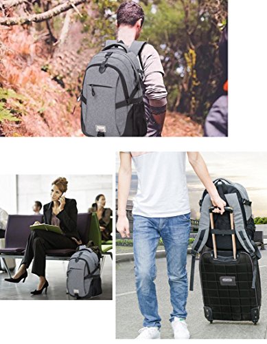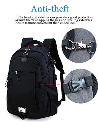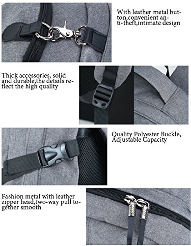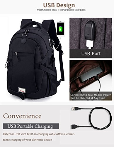-. Feature : ❤Dimensions:18.9x 13 x 6.3 inch with dedicated Laptop compartment holds Laptops less than 16 Inch / ❤Large Capacity:3 MAIN pockets & 7INNER small pockets provides a separated space for your Laptop, iPhone, iPad, pen, keys, wallet, books, clothes,bottle and more. beside, there has a pocket at the back, very convenient and safe. / ❤External USB InterfaceExternal USB Interface: You can easily and conveniently charge your phone, tablet and other devices without opening up the backpack. / ❤Anti-Theft:The front and side buckles provide a good protection against thefts unzipping the bag and stealing valuables. And it is more convenient than coded lock. / ❤Comfort:Back System and Strap with Thick Pearl Wool , More Breathable and Comfortable