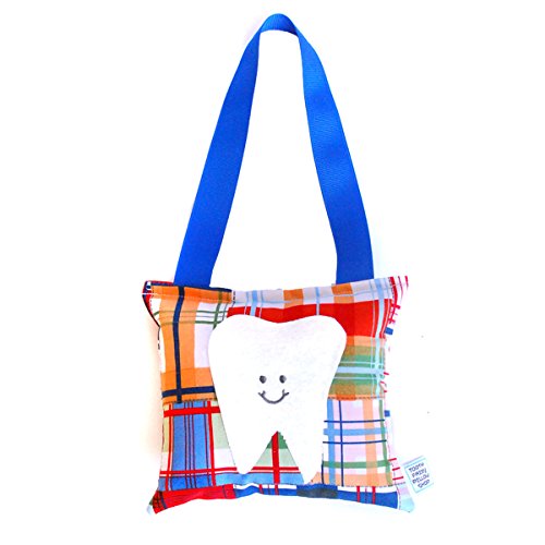 Boy's Tooth Fairy Pillow in Navy and Tangerine Madras Print