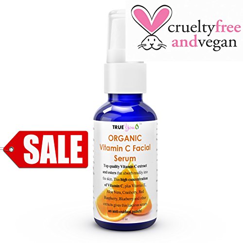 -. Feature : ★Organic Vitamin C Serum for Face - Best Quality Topical Vitamin C you will find, High Potency+Ester C! Produces Collagen which Smooths out Wrinkles & Restores Elasticity on Your Skin! Reduces age spots and lightens skin. New Blue Glass Bottle Protects Vitamin C from UV RAYS, PUMP PROTECTS SERUM FROM OXIDATION, AVOID Other Serums with Dopplers that Exposes the Vitamin C to Air!!! / ★No Parabens! Likely the Only True Organic, Natural & Vegan Vitamin C Serum/Cream on Amazon! Avoid the Fakes & the Unnecessary Chemicals that will do your Face more Harm than Good! / ★Includes Aloe Vera & High Quality Anti-Oxidant Extracts such as Cranberry, Red Raspberry, Blueberry & more for a Real Wrinkle Fighting Punch! / ★Adjusts PH levels (ph4.5)! Luscious 1 oz serum absorbs readily into your skin. / ★True You's Vitamin C Serum Sells Out Quickly, Get Your Serum While Supplies Last! 100% Satisfaction Guaranteed or Your Money Back! (Combine with True You's Super Antioxidant Moisturizing Eye Cream for a Boost: http://www.amazon.com/gp/product/B00JE2T89Y)