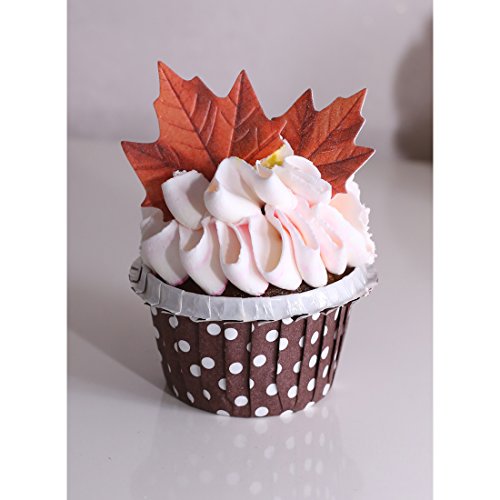GEORLD Edible Fall Leaves Set of 48 Cake Decorations, Autumn Cupcake Topper 2 Colors
