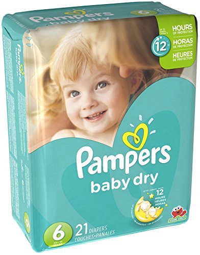 Pampers Baby Dry Diapers live up to their name. One of the most popular diapers in the Pampers family, these diapers offer your baby up to 12 hours of complete dryness and overnight protection. Compared to ordinary diapers that only have 2 layers of absorbency. These diapers have 3 layers of absorbency, which keeps your baby's skin up to to 3X drier than with other diapers. What's the secret to Pampers Baby Dry absorbency? These diapers have a special, extra-wide UltraAbsorb layer. This layer contains a gelling material called a superabsorber, which is capable of absorbing up to 30 times its weight in liquid. Liquid passes through the 3 layers of absorbent material and is locked away in the super absorbent core, keeping wetness far away from you baby's skin, helping them stay comfortable and rash free. These diapers also offer top-notch leak protection with their soft, flexible sides. The flexible sides make for a snug fit whether your baby is crawling, playing, walking, or sound asleep in their crib. These diapers are ultra soft inside and out so there's nothing that will irritate their skin or interrupt their sleep. Your baby will sleep soundly and comfortably all the way through the night. Since you'll fall in love these diapers, Pampers makes them in an extensive size range. With sizes 1, 2, 3, 4, 5, and 6 you can stick with the same line for the entire course of your baby's diaper-wearing days, until they're fully potty trained. You and your baby will both love the adorable Sesame Street characters on every diaper - Big Bird, Elmo, Cookie monster, and more. You can trust your baby's delicate skin to these super-soft diapers.
