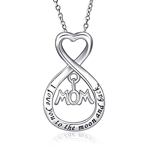 Love Heart Infinity Engraved Necklace. Theme: Mom, I Love You To The Moon and Back