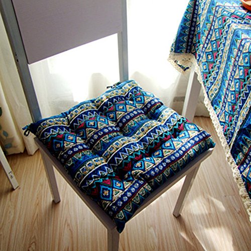 -. Title : yazi Blue Mediterranean Bohemian Style Tie On Dining Room Chair Pad Office Reversible Seat Cushion