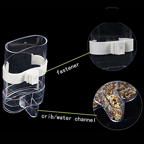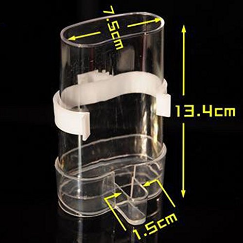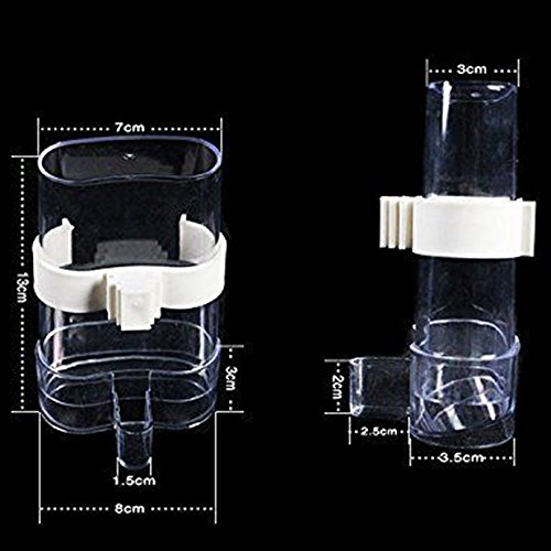 Studio : zswell Publisher : zswell Binding : Misc. Product Description Description: * It perfect used for hold small food or water. * Easy to fill water and food.No need to open the cage,Doesn't drip,doesn't leak. * Using high quality PP material,safety and health,strong and durable. * Bird Pet Drinker Feeder Waterer Clip for Aviary Budgie Cockatiel Lovebird Bird Feeder Farming Equipment * Warm tips:The clip has two colors, one is white, another is green,we are shipped randomly. Feature: * Capacity:200ml * CY:250ml; Height: 13 cm/5.3'; Diameter: 8cm/3.1' ;Outlet width:1.5cm/0.6' * 100% brand new and high quality. Package: * 2*Bird Food Feeder
