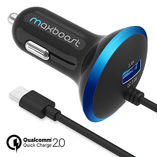 1 x Maxboost Quick Charge 2.0 Car Charger with integrated Quick Charge 2.0 micro-USB cable