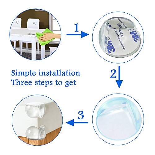 ?Easy to install: 1.Clean the surface of the furniture that you want to paste the furniture edge bumpers. 2.Adhere double sided tape to the 3 section of your furniture corner. 3.Place the Furniture Corner Protectors in the suitable position and press strongly. Wait at least 48 hours for full adhesion before testing.