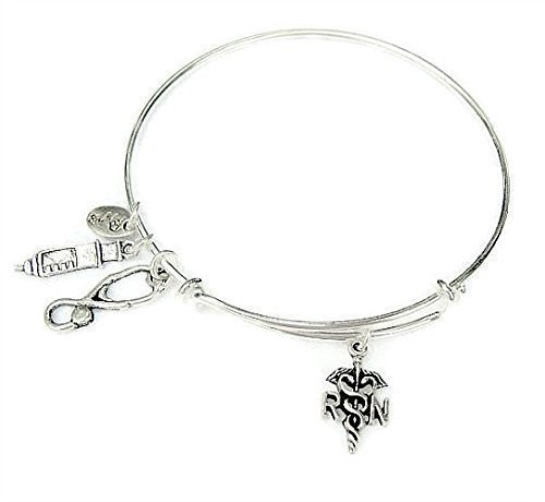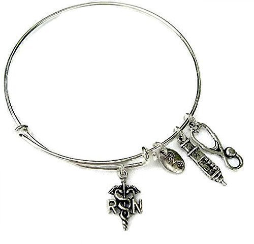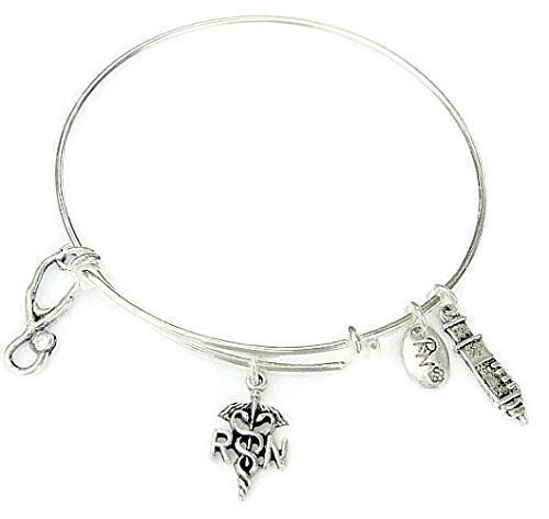 -. Title : Adjustable Bangle - RN (REGISTERED NURSE) 925 Sterling Silver Stacking Charm Bangle