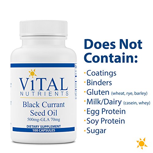 Black Currant Seed Oil contains high amounts of the essential fat Gamma Linolenic Acid (GLA), an Omega 6 fatty acid that is essential for metabolism, but cannot be produced in the body. GLA supports cartilage and joint function, dilates smooth muscle, maintains healthy nerve function and helps maintain cholesterol levels that are already within the normal range.Vital Nutrients mission is to manufacture superior quality nutraceuticals that exceed both industry and government standards and provide clinically effective results. They provide over 200 science-based and clinically effective products. They have a comprehensive quality assurance program to ensure that purity and potency is consistently met on every product that they manufacture. Vital Nutrients uses independent U.S. ethical laboratories to test all raw materials and finished products. Each raw material is tested, regardless of origin, for purity and potency. All finished products are tested through a real time stability protocol for expiration date validation. They are an FDA Inspected facility that exceeds FDA cGMPs, and a member of the NPA.Feature