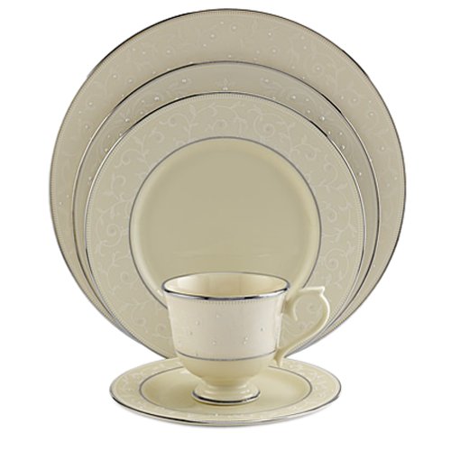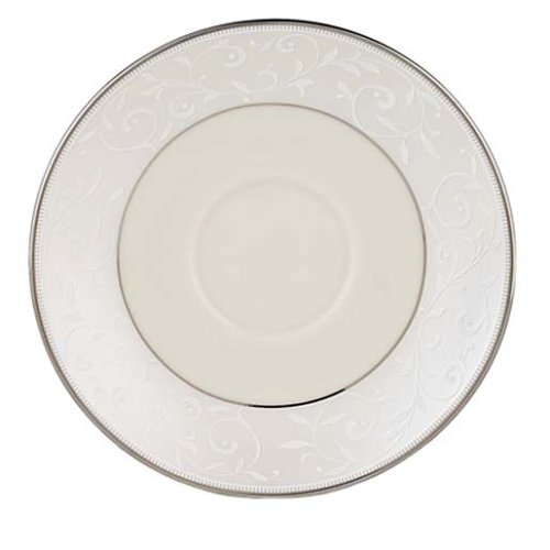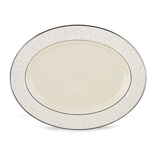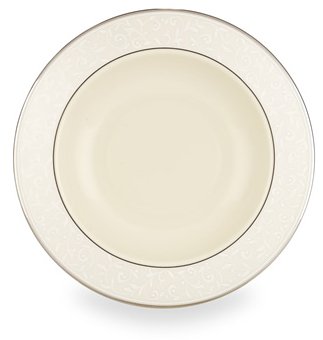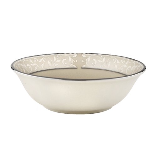 A serving piece, deserving praise... In this versatile bowl, a tone-on-tone formal design is adorned with pearl-white enamel dots. And the graceful floral artistry is framed by a micaceous background. Crafted of ivory fine china accented with precious platinum.Feature