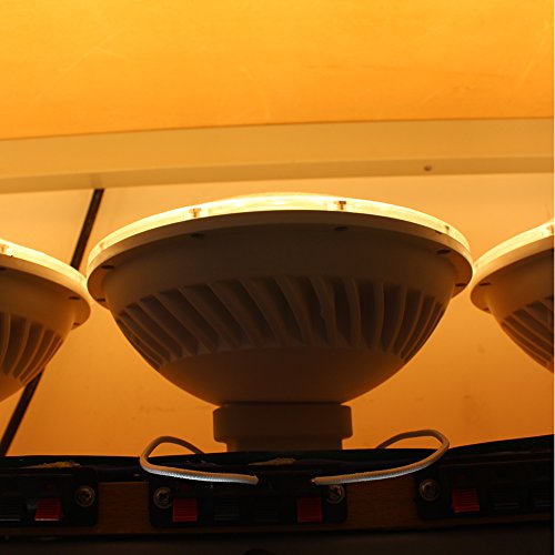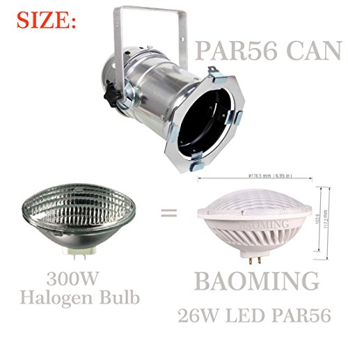 Super Bright - 3000Lm 3000k Warm light GX16D socket ------Standard Par56 Halogen Bulb Size: 7.1*7.1 x 5.3 inch Professional application for garage, warehouse, barn, office, school, hospital, shopping mall, supermarket, station, restaurant, hotel, workshop, stage, etc anywhere indoor need bright light.