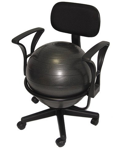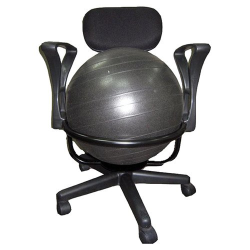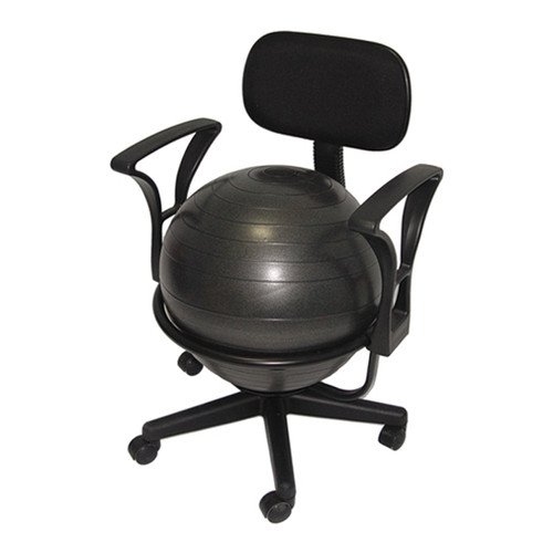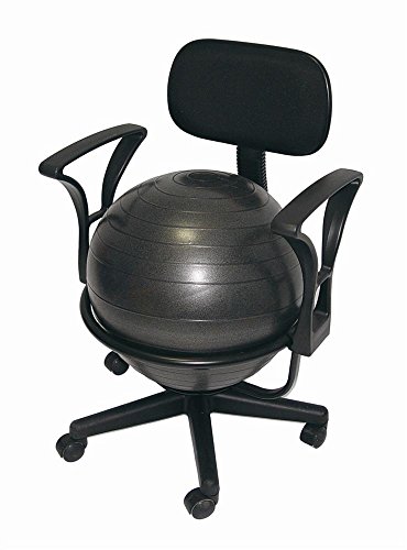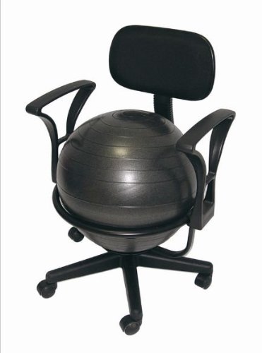 Studio : AeroMAT Publisher : AeroMAT Binding : Office Product Product Description 35955 Features: -Ergonomic seating combines the benefits of exercise fitness ball and the rolling base.-Promotes active sitting while strengthening the back and improving posture.-Great alternative to traditional chair for both office and leisure.-Compact, lightweight and easy to transport.-Steel frame.-Chair height is fixed, not adjustable.-Casters do not have a locking mechanism.-Weight capacity: Ball in Chair - 300 lbs , Ball Alone - 1250 lbs.-First pre-assemble the chair without screws.-Once assembled, loosely put each screw in and turn it one or two turns.-Once all screws are inserted, tighten all the screws half way then go back and tighten all the screws again.-NOTE: If one screw is tightened completely before the others, some of the pieces might not align properly and the last screw may not fit.-Ball should be filled between 45cm to 50cm diameter; with 48cm being the best diameter. Measure the diameter from the North Pole to the South Pole with a tape measure or a string that is marked in Centimeters. This would be from where you fill the ball on the top to the bottom and you will see where the point should be by the center of the smallest circle. If the ball does not get to 45cm, let it sit for at least 24 hours then continue to fill again. Includes: -Ball and hand pump included.-Casters included. Color/Finish: -Color: Black. Dimensions: -Arm height: 25' from floor.-Ball: 22' H.-Overall dimensions: 22' H x 22' W x 31' D.-Product weight: 20 lbs. 0
