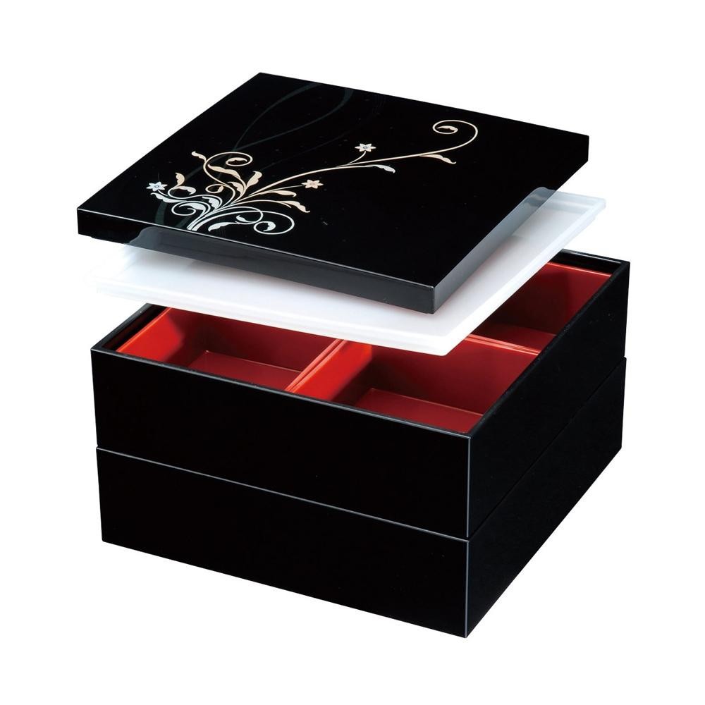 | 仕切りが付いていてつめやすいお重です。仕切りは取り出すことができます。シール蓋付きです。 |