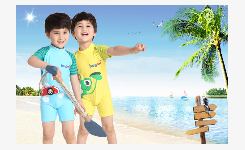 hugmii儿童泳衣连体男童宝宝女童男女孩1-12岁韩国防晒游泳衣泳裤