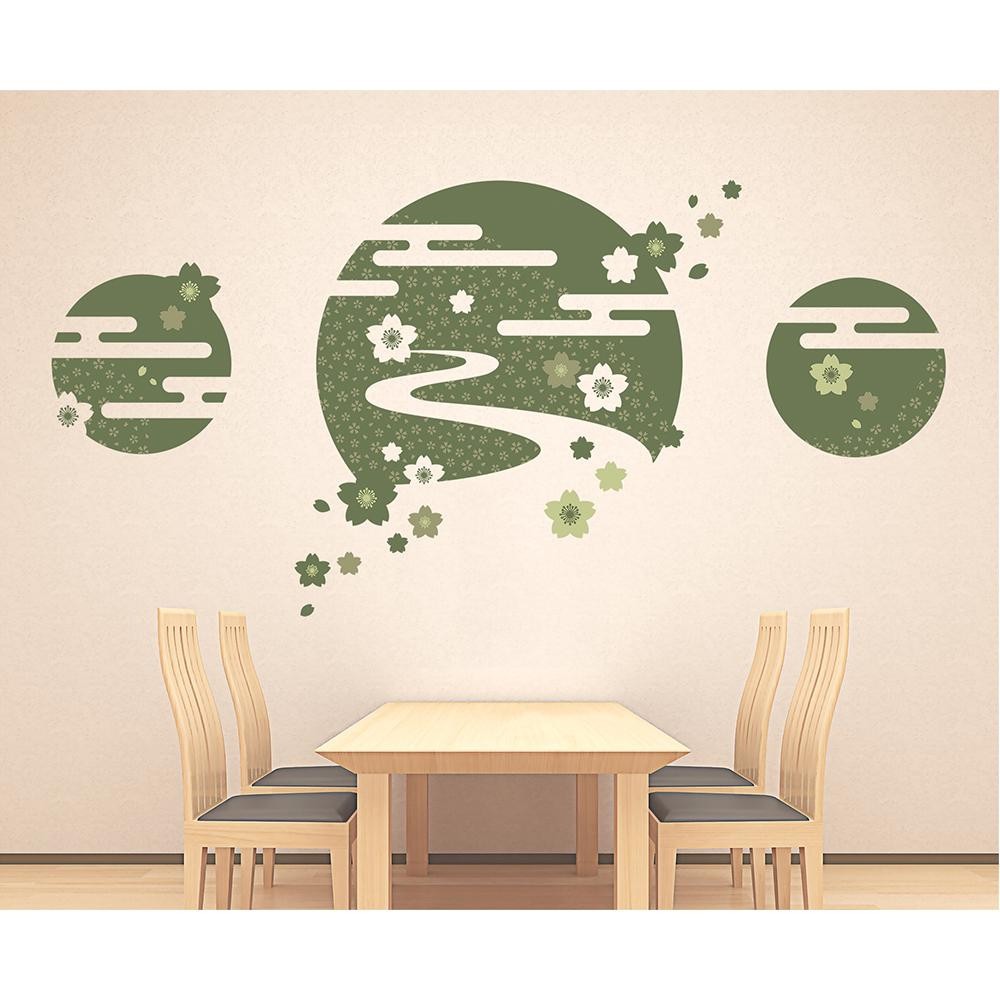 桜や小川を和風の風流な雰囲気にデザインしたウォールステッカーは和室に最適です。