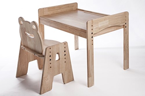 MYMQ Adjustable Seat Height Kids Chair, Solid Wood Water-Based Paint with 5 Seat Levels, Frog Face