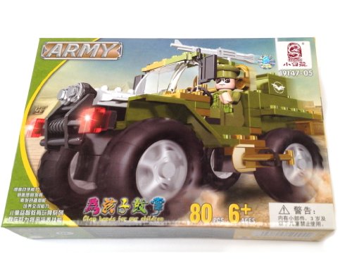 -. Title : Loongon Army 19147-05 - Armeejeep, Militärjeep, Geländewagen, Bausatz mit 80 Teilen, 1 Figur, kompatibel zu anderen Bausteinherstellern