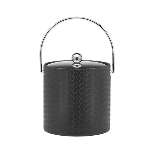 -. Title : Kraftware Ice Bucket with Stitched Handle and Metal Cover, Black - 3 Quart