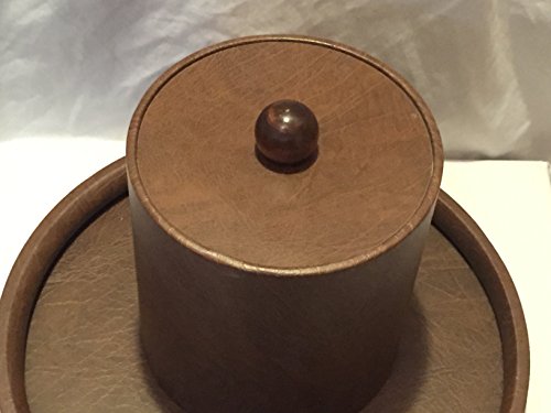 -. Title : Ice Bucket - Cocoa Brown Faux Leather Wrap, Double Wall, with Lid and Matching Tray