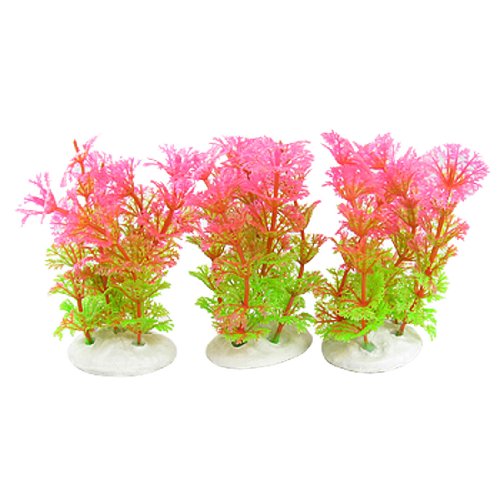 Uxcell 3-Piece Plastic Aquarium Underwater Grass Decoration, Pink