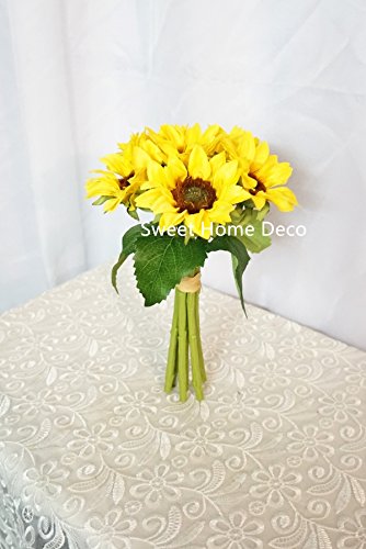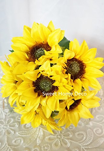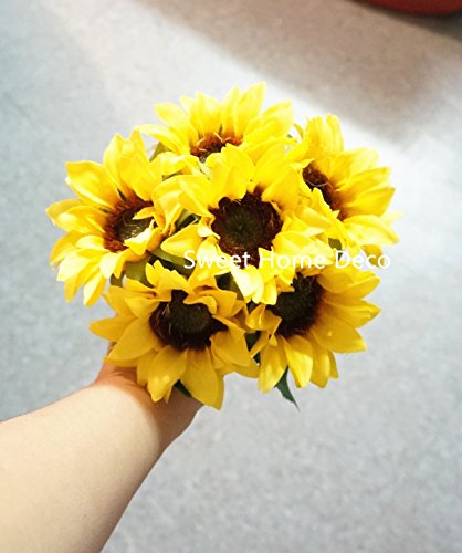 Sweet Home Deco Silk Sunflower Artificial Flower Bouquet/Flower Boutonniere Wedding Flowers (Yellow 6-Stem Bouquet)