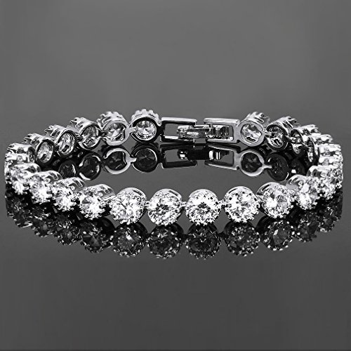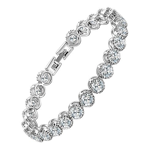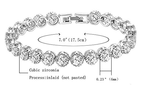 -. Title : Women's White Gold-Plated Inlay Swarovski Elements Cubic Zirconia Tennis Bracelet, 7"