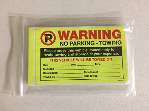 Warning, Please Move this Vehicle Immediately to Avoid Towing - Fluorescent Stickers, 50 Stickers / Pack, 8" x 5" - Fluorescent Parking Violation Stickers Discourage Illegal Parking!Feature