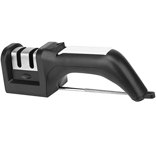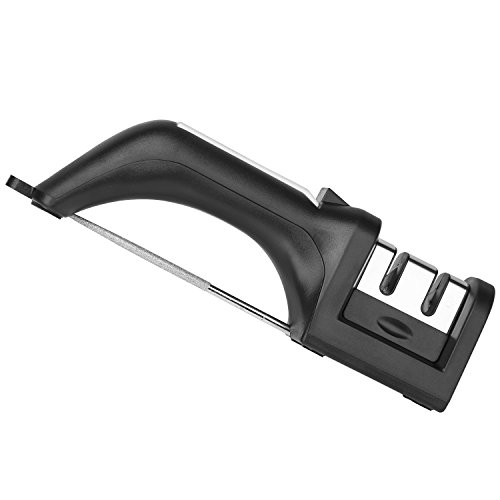 - 2 stage sharpening system-A coarse diamond slot for extremely dull or damaged knives and a fine ceramic slot for honing,finishing and polishing.With its 2-stage sharpening system,you can polish your blades to razor-sharpness