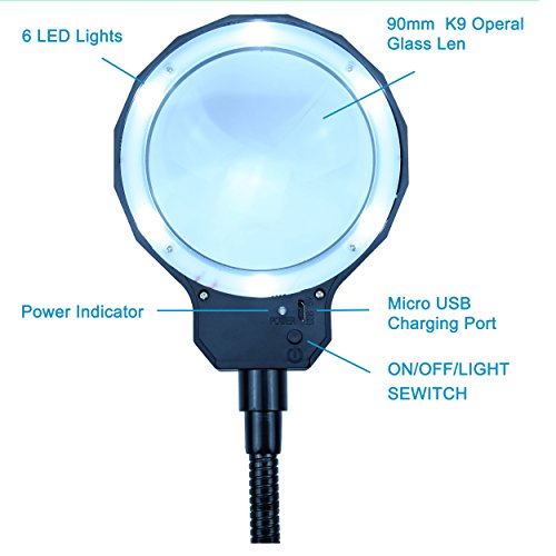 ULTRA-BRIGHT DAYLIGHT INTENSITY: This lamp equipped with 6 pcs energy-efficient Daylight LEDs with 3 different levels of brightness. Best choice for reading, working crossword puzzles, knitting, crocheting.