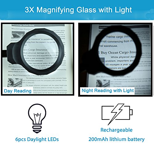 LED 3X Magnifying Glass with light -Bestaid Illuminated and Regchargebale Magnifying Lens with Metal Clamp -3 Adjustable Light Settings & Detachable Connector