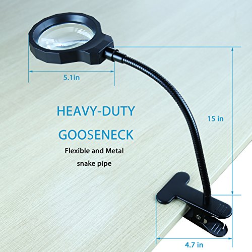 FIRMLY ATTACH: Heavy-duty and non-slip grip mental clamp attaches firmly to any desk, table and ledge (clamp opens to a maximum of 2 inches). The most innovative twists on the magnifier light allows you to switch between a magnifying lamp and a handheld magnifier with detachable aluminum handle.