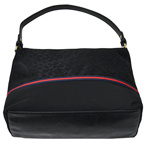 Tommy Hilfiger knows fashion! This small hobo purse measures 11.5" (L) x 9.5" (H) x 4.5" (D) with a 7.5" strap drop. It features a smooth solid colorblock material and imitation leather. This purse has a full-length top-zipper, an interior zip close pocket, and an interior pouch. Metallic hardware adds a subtle touch to this unique design.Feature
