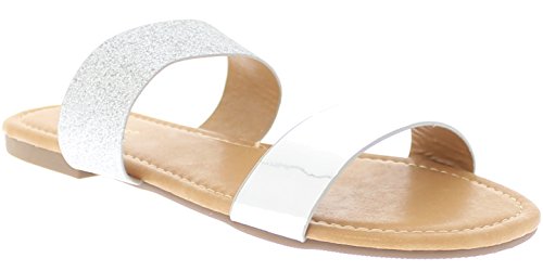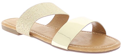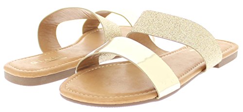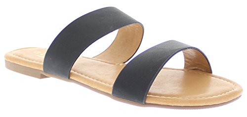 Product DescriptionTwo bold straps bring breezy versatility to a wardrobe-staple slide sandal crafted with a flat sole and a cushioned footbed.0