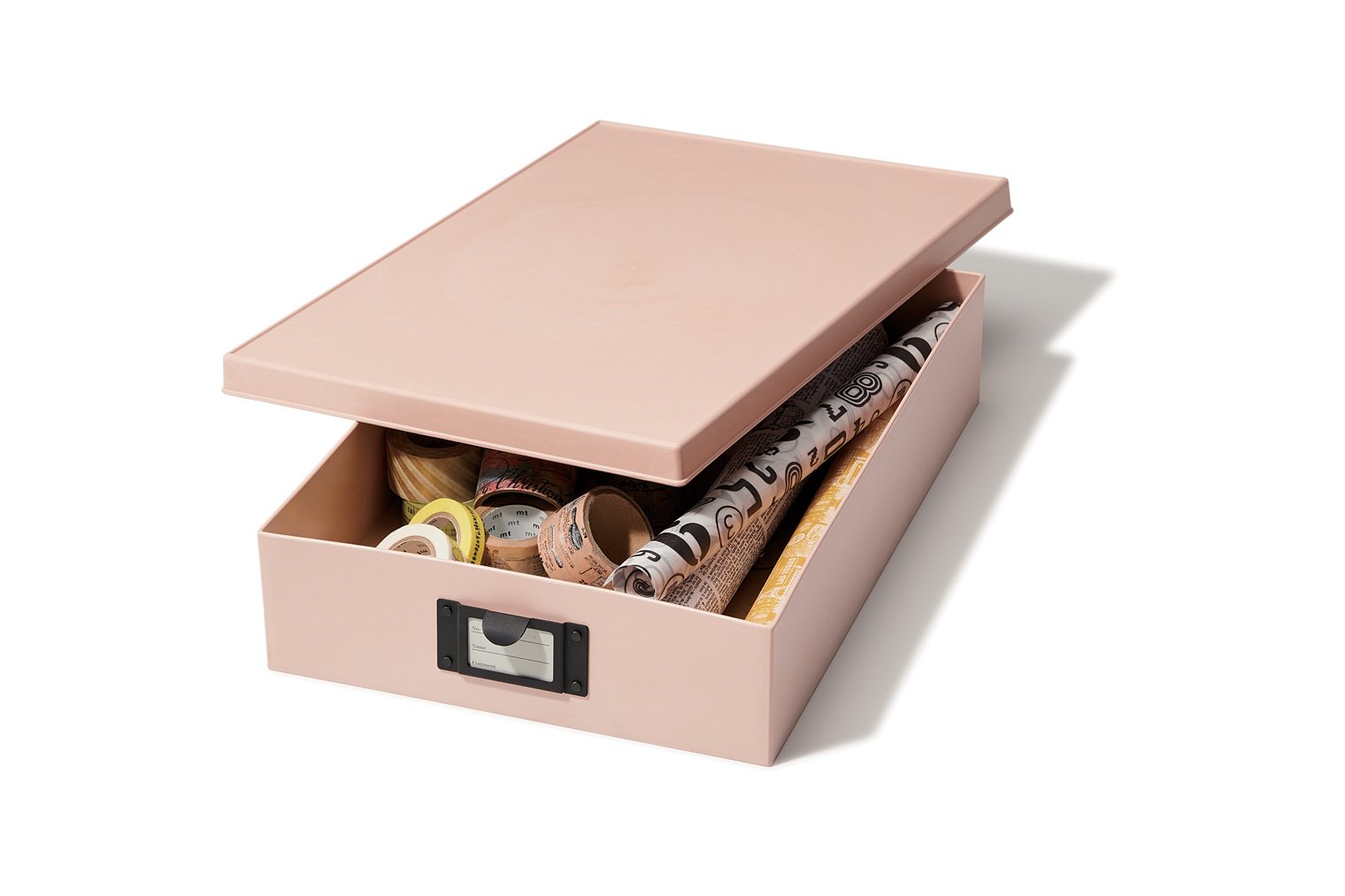 It arrives in a box of 31 cm × 40 cm × depth 11 cm. (The packaging may be different each time.) The product is 24 cm × 34 cm, it is about 7.5 cm in height with the lid on. As this product is Paper Mix, raw materials composed of synthetic resin and paper ingredients are used, so it seems that if you feel that you feel that you have it, that the touch feeling is "papering" more, Just saying that it looks like paper is just like entering the paper, the texture is also the plastic itself, the strength seems very likely. Inside is 23 cm × 33 cm × 6.5 cm (excluding the lid), it is the size that A4 version documents and pamphlets fit well and have a little margin. We can also attach a name tag whose size is 2.5 cm in length × 4 cm in width. It seems to be useful for various purposes.