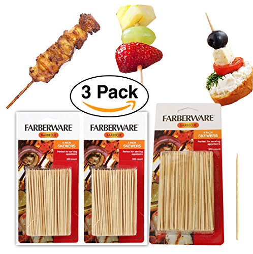 Bamboo Barbecue Skewers 300ct – 4” Set of 3 by Farberware For Appetizers and Fruits