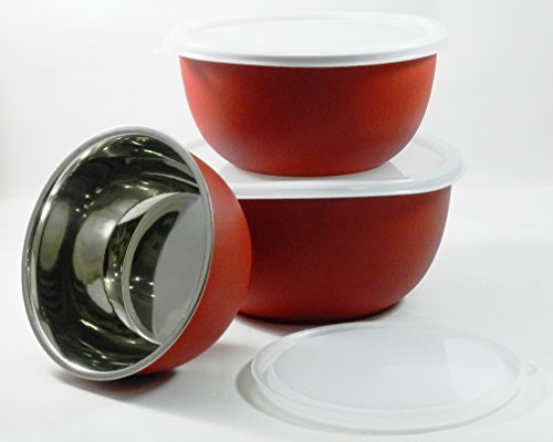 Stainless Steel Bowl Red Silver with Lid Mixing Storing Serving Set 6 Piece