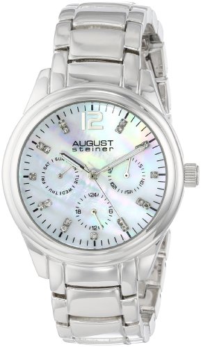 August Steiner Women's AS8076SS Quartz Multifunction Crystal Mother-of-Pearl Silver-tone Bracelet Watch