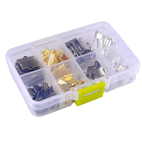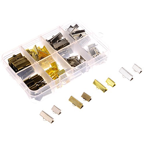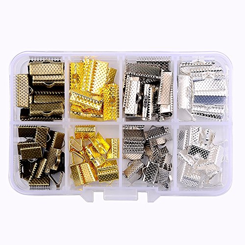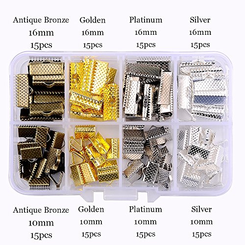 In A Box(120pcs/box) Kit with Mixed Color 10mm and 16mm Ribbon Bracelet Bookmark Pinch Crimp Clamp End Findings Cord Ends Leather Crimp Ends Fasteners Clasp Jewelry Making Findings