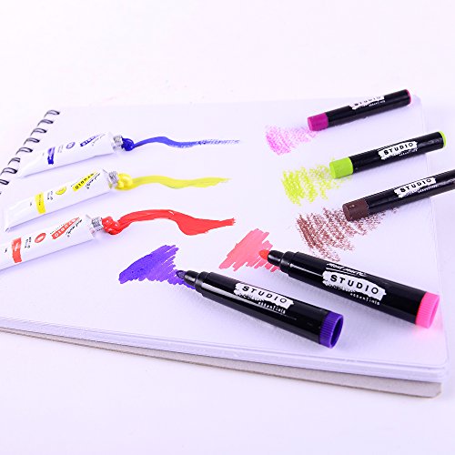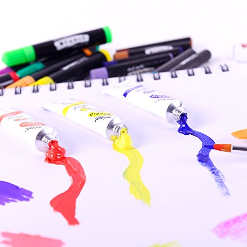 - Includes: 12 x acrylic paints,12 x watercolour paints,12 x oil paints, 54 x oil pastels, 42 x felt tip markers, 34 x colour pencils, 2 x round brushes, 2 x flat brushes, 1 x pencil sharpener, 1 x 2Bpencils,1 x 4B pencils, 1 x eraser.