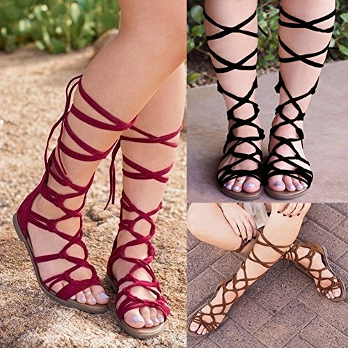 Huiyuzhi Womens Bohemian Lace Up Flat Sandal High Boots Sandals