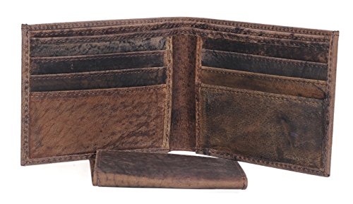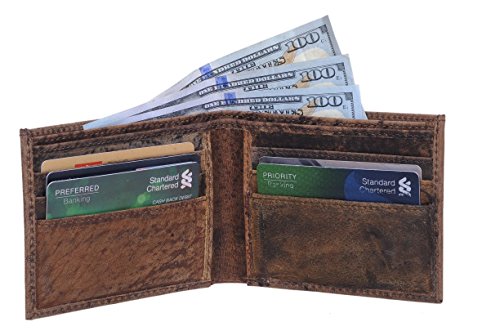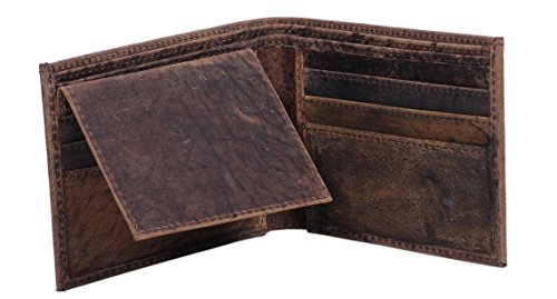 -. Feature : Bifold Wallet with ID and Card Slots / 6 Card Slots with ID Window / Made of Durable Genuine Hunter Buffalo Leather