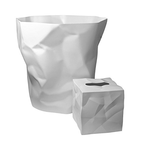 Essey White Bath Accessory Set - Bin Bin Waste Basket and Wipy Tissue Holder