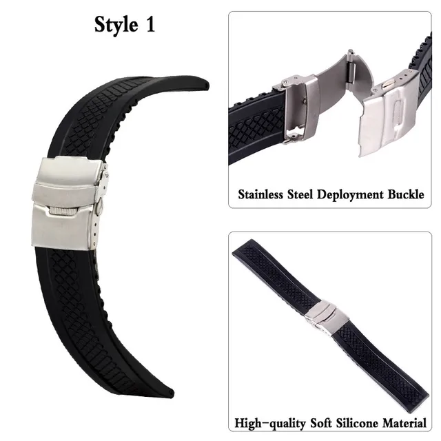 | [해외]3 스타일 스포츠 시계 밴드 20 미리메터 22 미리메터 24 미리메터 부드러운 실리콘 고무 스트랩 스틸 버클 팔찌 손목 손목 시계 액세서리 |