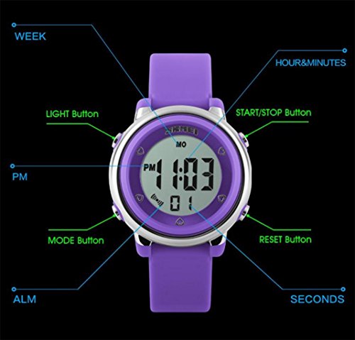 WUTONYU(TM) Children Digital Watch Kids Boy Girls LED Alarm Stopwatch Waterproof Wristwatches(Rose)