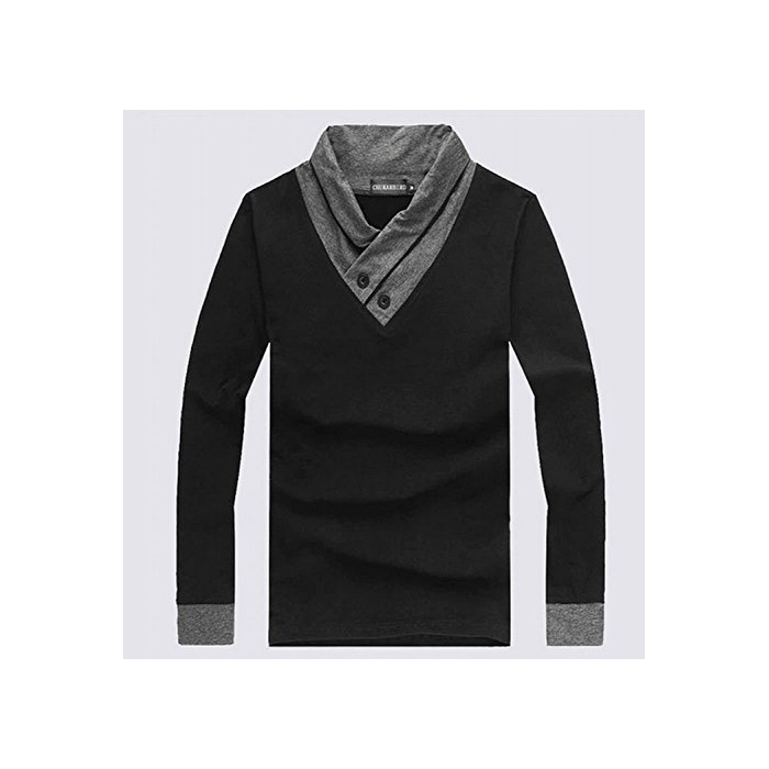 원본상품명: スタイリッシュモデル スリム Vネック 長袖 Tシャツ スカフ風 カジュアル シャツ MF01A (長袖 ブラック,M)