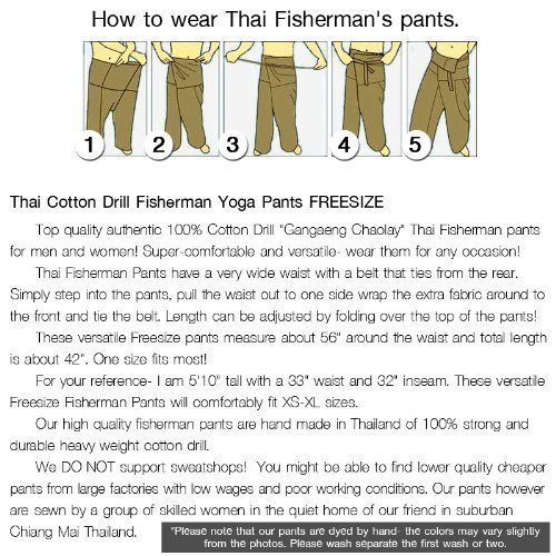 Studio : SIAM THAILAND Publisher : SIAM THAILAND Binding : Misc. Product Description Thai Fisherman's Pants are very popular with Yoga and Yoga Instructors ,and are often used as a standard uniform for Yoga Classes. Thai Fisherman's Pants are also useful for day-to-day relaxation wear around the house. Our Thai Fisherman's Pants are designed based on the traditional Thai ethnic clothing of the fishing villages of Southern Thailand. They make great traveler's pants, and are also very comfortable for larger people. Many martial arts schools find that Thai Fisherman's Pants are excellent for work outs and exercise routines during martial arts study. The flexible size of Thai Fisherman's Pants make them perfect for maternity pregnancy wear. They are perfect wear for meditation, massage or any relaxing pastime. All Thai Fisherman's Pants are made to high standards in Thailand from the finest local fabrics. 0
