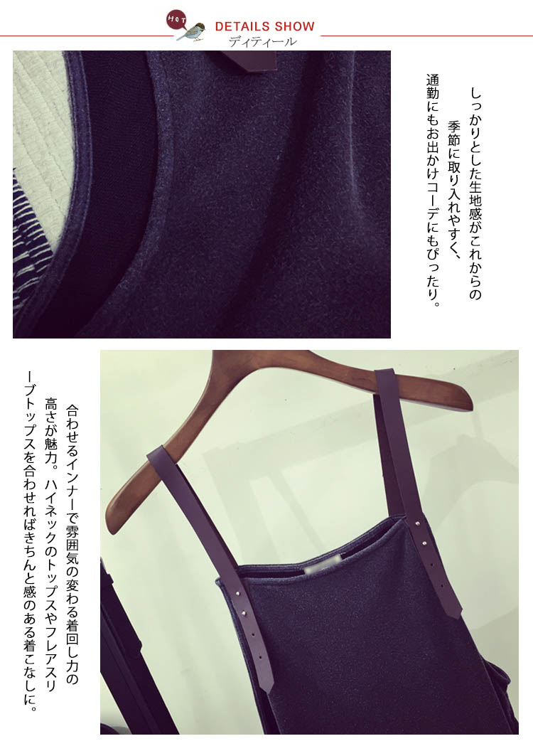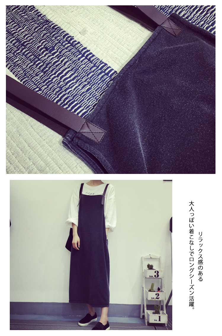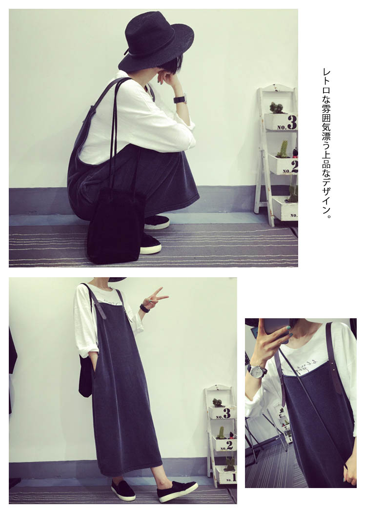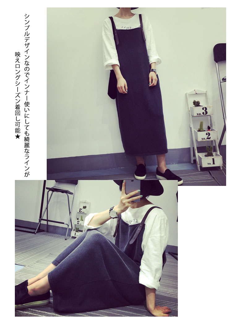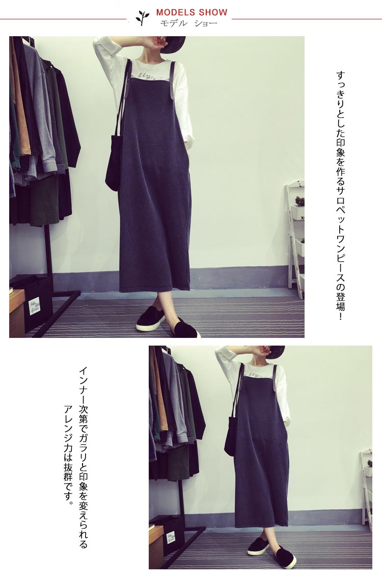 | すっきりとした印象を作るサロペットワンピースの登場!インナー次第でガラリと印象を変えられるアレンジ力は抜群です。レトロな雰囲気漂う上品なデザイン。シンプルデザインなのでインナー使いにしても綺麗なラインが映えロングシーズン着回し可能★ | |