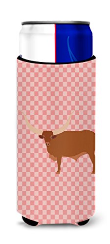 Caroline's Treasures BB7823MUK Ankole-Watusu Cow Pink Check Decorative Hugger, Slim Can, Multicolor