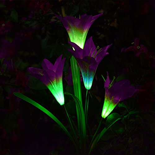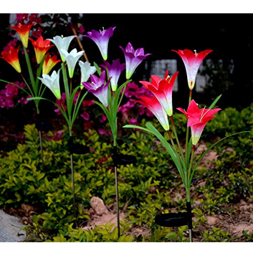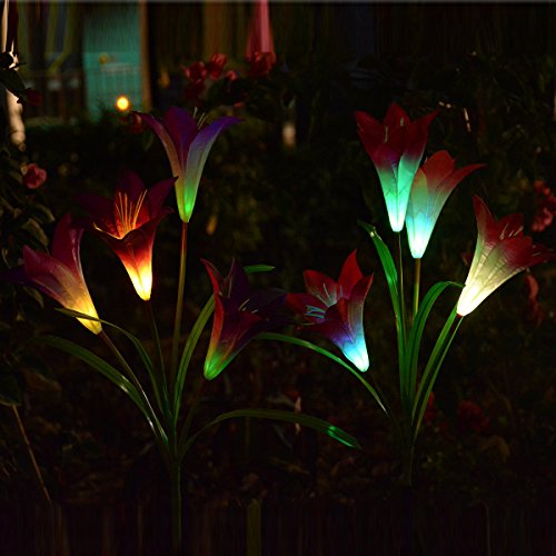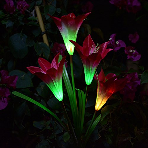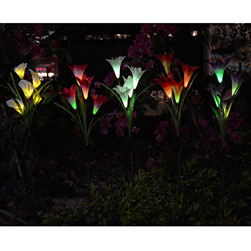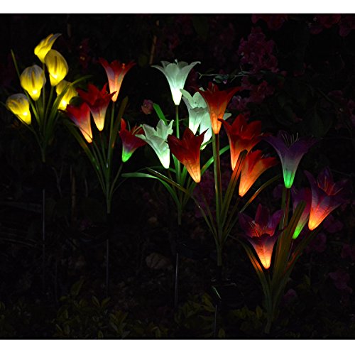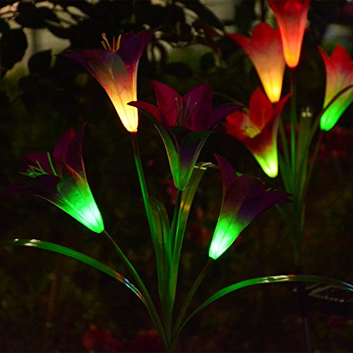 - 【Mutil- Color Changing Randomly】The solar flowers stake light with color-changing, various colors lily flowers will automatically light in your garden at night, add most interesting lighting joys.