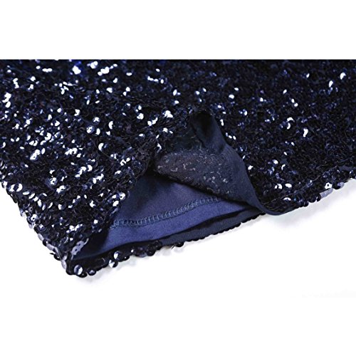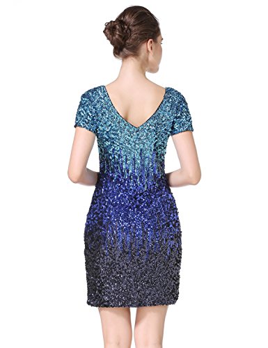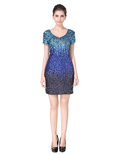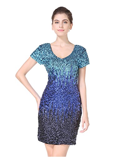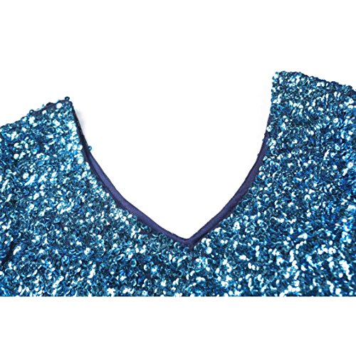 Women's Sequin Glitter Short Sleeve Gowns Sexy V Neck Mini Party Bodycon Dress Not Itching(S,Blue)